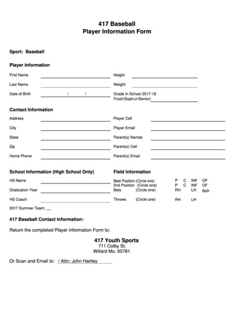 Download player information form template Doc Google eBookstore